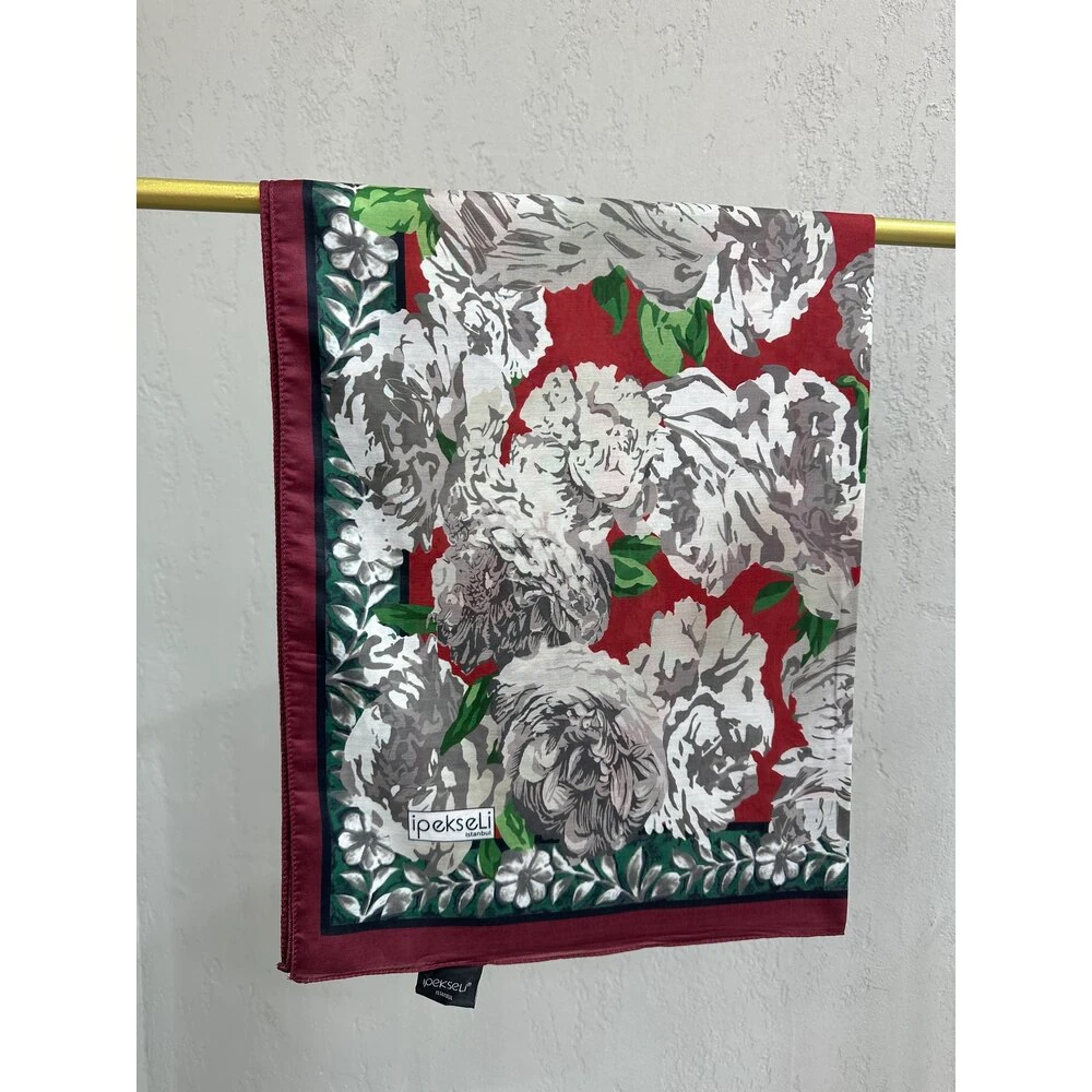 İpekseli Çiçek Desenli 4 mevsim kullanılabilir pamuk ipek şal.